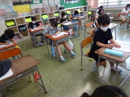 筆順を確かめて、丁寧に書きました。「一万円」ほしいなあと思いながら、ワークブックに「一万円」と書いていた子供がいました。「ぼく、一千万円と書いたよ。」と言った子供もいました。