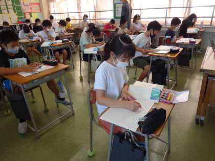 ノートに絵を描いていますが、国語科の学習です。