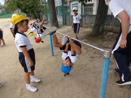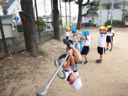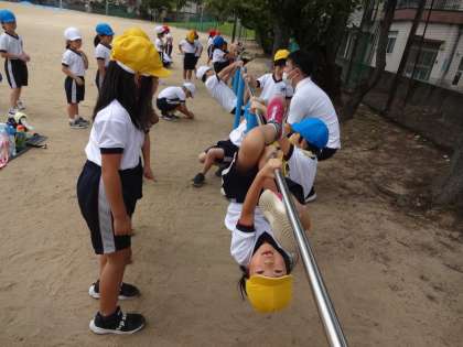 「地球回り」の技に挑戦し、粘り強く練習をしています。もうできる子供は、自慢げに見せてくれました。