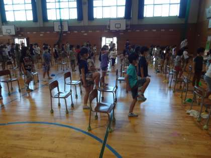 話のみならず、速く(または、リズムよく)走るために必要な体の動かし方や、よい姿勢なども教わりました。実際に、運動もしてみました。