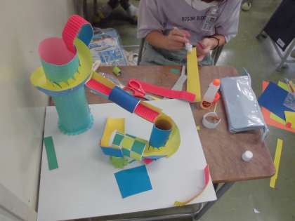 コロコロガーレの完成に向けて、製作を進めました。実際にビー玉を転がしてみて、修正していきました。完成が楽しみです。