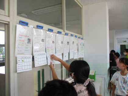 9月も終わりに近付き、5年生の子供たちは、2学期の始業式に立てた自分の目当てとクラスの目当ての振り返りを行いました。2学期は毎月月末に振り返りを行い、自分やクラスが立てた目当ての達成を目指します。