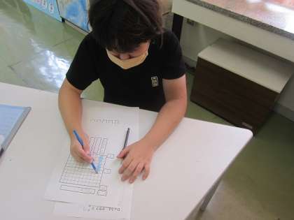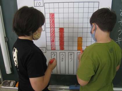 今日は、棒グラフについて学習しました。表を見ながら、棒グラフにかき表したり、グラフから読み取ったことを話したりすることができました。