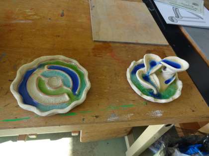 その性質を使って、ガラスが水の流れに見えるような焼き物を製作しています。