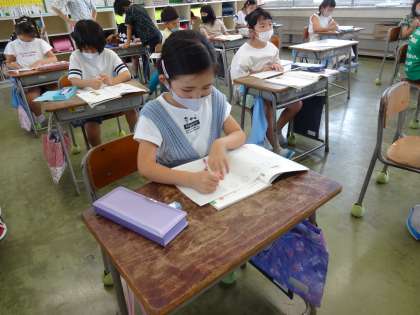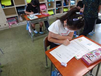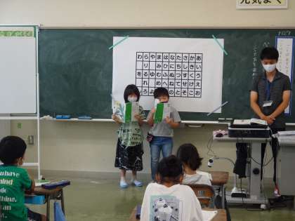 「あいうえお」や「あかさたな」を使って文を作る言葉遊びの学習をしています。