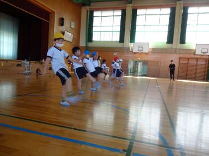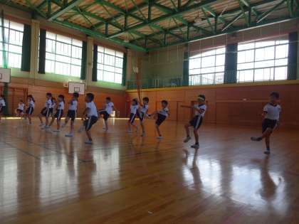 2年生と3年生の合同体育は、学習発表会の練習です。今日は、ダンスグループと縄跳びグループに分かれました。