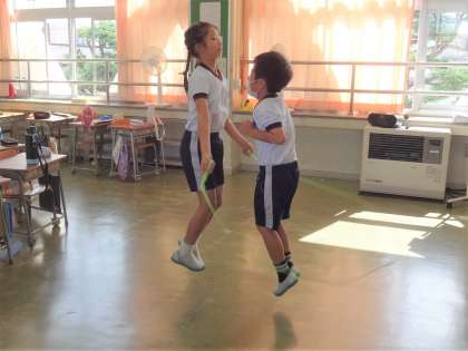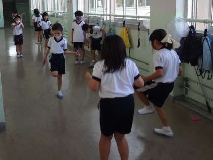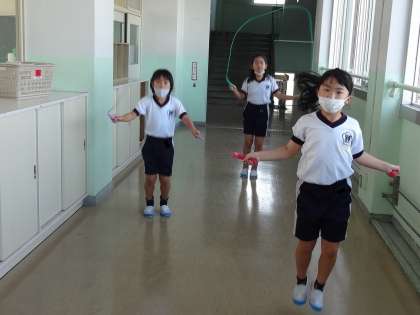 縄跳びグループは、教室や廊下で行いました。