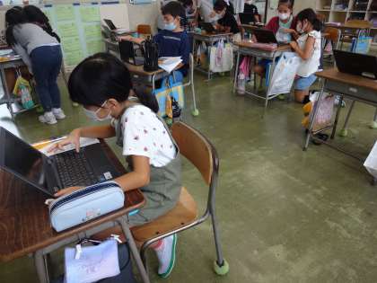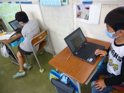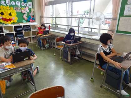 クロームブックで、学習サイトを開くと、スーパーマーケットのフロアの絵が表れます。その中から、人を見付けてクリックすると、どのような仕事をしている人か分かるのです。