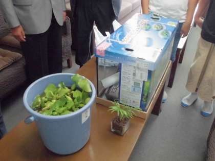 地域の方からメダカを、ライオンズクラブから水槽、水草、ヒーター等の飼育に必要なものをいただきました。