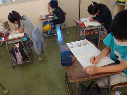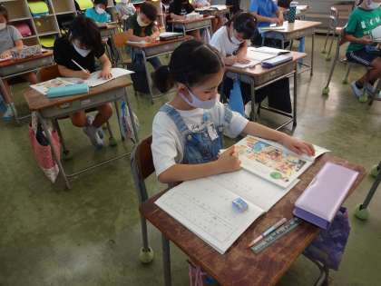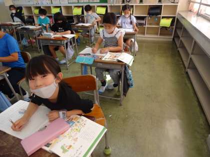「かん字のひろば」では、1年生で習った漢字の復習をしています。