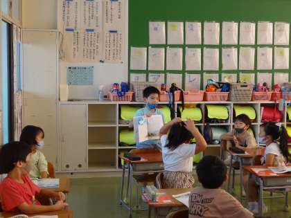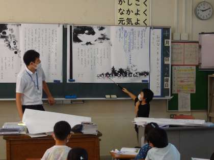 物語文「くじらぐも」の情景を思い浮かべながら、一文一文丁寧に読んでいます。