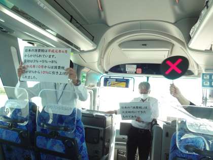 行きのバスでは、富山法人会の方が、税金にまつわるクイズを出題してくださいました。立山砂防ダムについてのVTRも視聴しました。