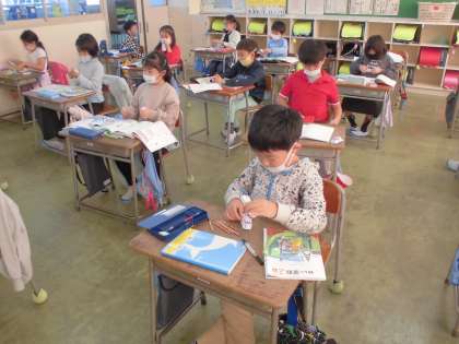 カードをよく混ぜて広げ、例えば、自分が引いた数が35であれば、「五七35」というように素早く答える練習に取り組みました。5の段は完璧に覚えられましたか。