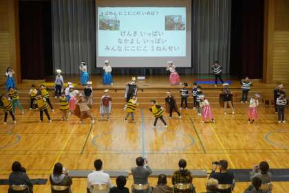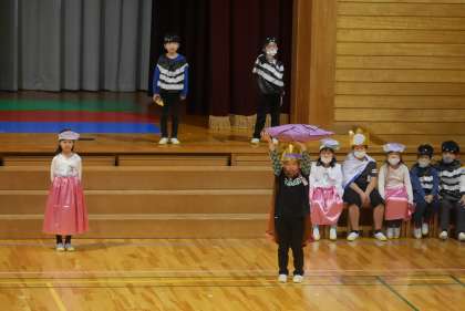始めは、どのように台詞を言えばよいか困っていたり、分かりやすく伝えるふりつけに困ったりしている子供たちでしたが、だんだんと上達していく様子に成長を感じました。