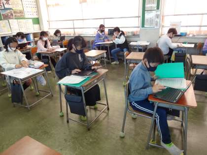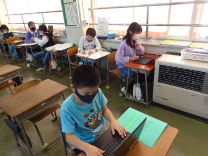 総合的な学習の時間では、エコについて調べ、自分たちでできることはないかを考え、生活を見直そうとしています。