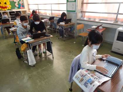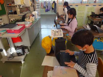 11月2日(火)の1・2限に、スーパーマーケットへ社会見学へ行く予定です。その時にどのような質問をするのかを考え、クロームブックのスライドへ入力しています。