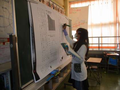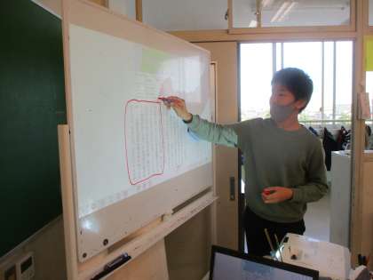 「固有種が教えてくれること」の説明文には、たくさんの資料が掲載されています。どの文が資料と結びついているかを学級で確認し、資料を用いた文章の効果を考えました。