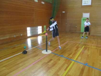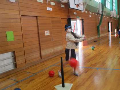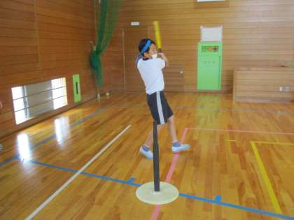 ティーボールの学習が今日からスタートしました。バットを握ったことのない子供たちがほとんどだったため、バットの握り方を学びました。
