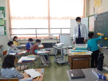 「13−9」の計算の仕方を考えています。様々な考え方をブロックを使って説明しています。