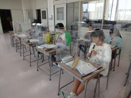先生がリコーダーで、2種類の吹き方をして、どこが違うか聴き比べました。