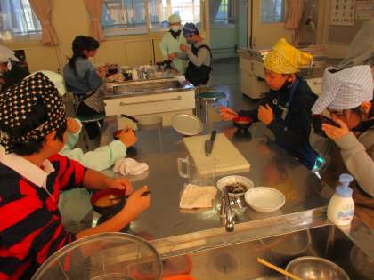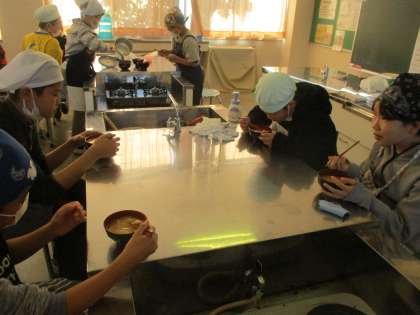 味噌汁は無事に完成しました。お味はいかがだったのでしょうか?食べ終えた後は、グループで協力して片付けをしました。