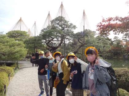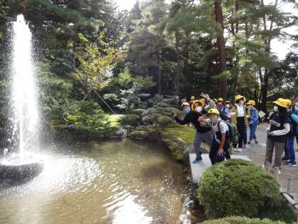 午後はまず、兼六園へ行きました。日本三大名園の一つというほどあり、庭園はとても広く、美しかったです。子供たちは、美しい景色を楽しみました。