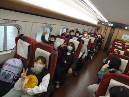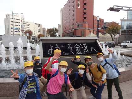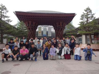 金沢城から、「金沢周遊バス」に乗って金沢駅に戻りました。金沢駅の鼓門前で最後の集合写真を撮り、新幹線に乗って帰ってきました。