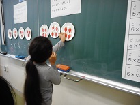 かけざんの練習に毎日、取り組んでいます。今日は、「3×4」と「4×3」の答えが同じでも、意味が違うことをみんなで確認しました。自分の考えを張り切って発表する様子が見られました。