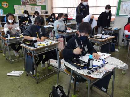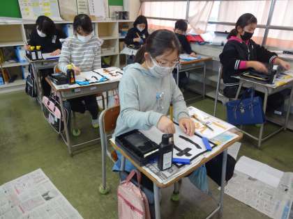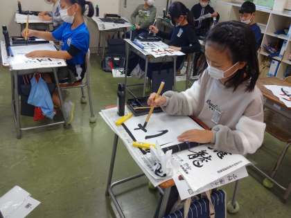 前時と同様に、2つの結びの「横結び」と「縦結び」の異なる筆づかいに気を付けて、丁寧に筆を運びました。