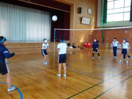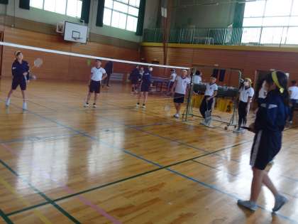 ソフトバレーボール、卓球、バドミントンの3種類のネット型ボール運動に親しみました。色団ごとに、決められた時間でローテーションをして、全てのスポーツの特性に触れました。