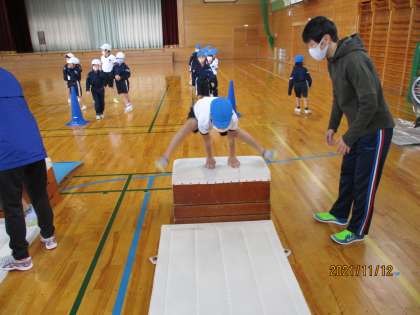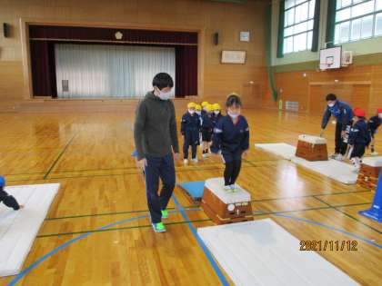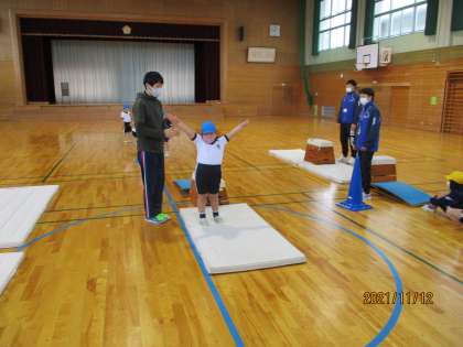 富山市体育協会から指導員の方々をお招きして、跳び箱の学習を行いました。