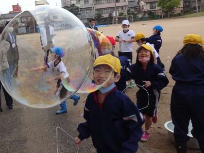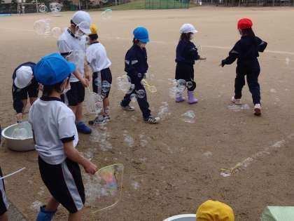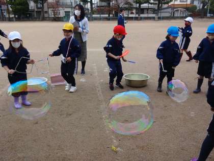 大きい、まんまるい、長い、雪だるま型など、作りたいしゃぼん玉は、一人一人違います。楽しい時間は、あっという間に過ぎ去りました。