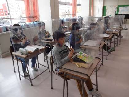 最初に、楽譜どおりに指が動かせるか練習しました。その後、拍数に合わせることや息の吹き方のこつを学び、実際に演奏しました。初めてにしては、上手に吹くことができました。