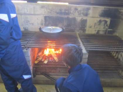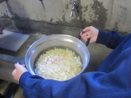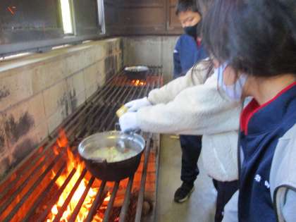 炊きあがったご飯はかまどから移動させ、鍋ではカレーライスの具を煮詰めています。完成までもう少しです。