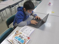 慣用句について学習しています。今日は、図書室に行って、慣用句を調べました。体、植物、動物、片仮名の言葉がついた慣用句を見付け、chromebookを使って分類しました。