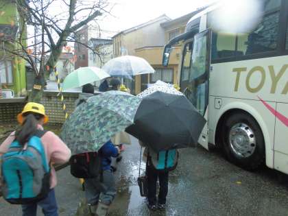 4年生の子供たちは、社会科の学習で富山市エコタウンへ社会見学に行きました。9時30分に、元気よく学校を出発しました。
