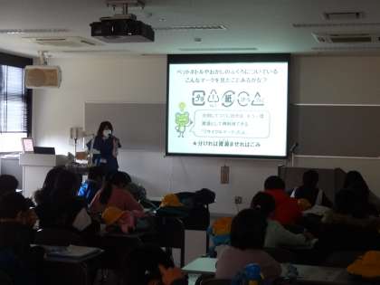 まず、エコタウン交流推進センターで、職員の方から、地球環境・3R・SDGs等について解説していただきました。また、富山市エコタウンの取組も教えていただきました。