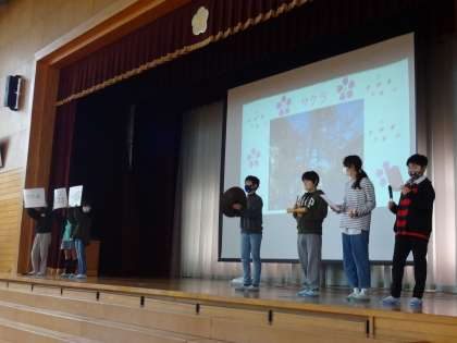 さわやか集会では、飼育栽培委員会が、校庭にある樹木の問題を出しました。本校にある樹木の名前に興味をもつきっかけになりました。