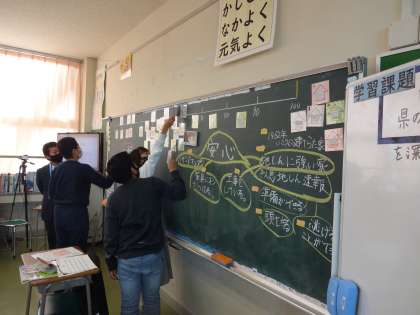 全体での話合いで友達の思いや考えを聞き、自分の考えと比べました。安心度に変化があった人、変化がなかった人の理由も聞きながら、国や都道府県の地震対策について理解を深めました。