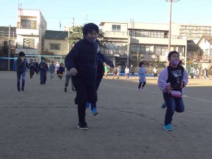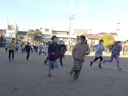 放射冷却で冷え込んだ朝ですが、グラウンドには、子供たちの元気に走る姿が見られました。