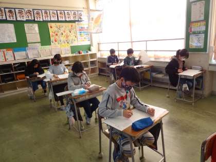 今日は、国語科と社会科を行いました。明日は、算数科と理科を行います。集中して取り組んでいます。実力は発揮できたでしょうか。