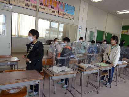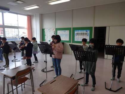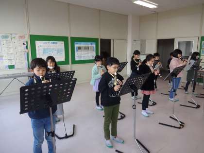 前半グループと後半グループに分け、聞き役グループは、演奏グループへアドバイスし、それを参考にして再び練習しました。みんなで技能を高め合っています。