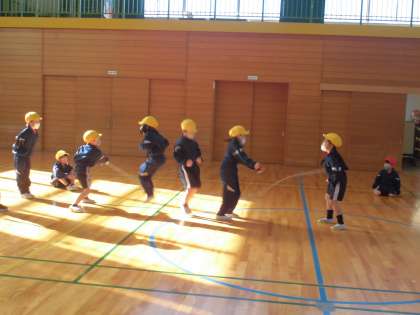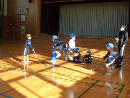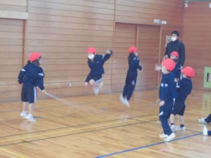 色団ごとに分かれて大縄跳びの練習をしました。最後は、各色団2〜3人ずつで跳ぶ様子を発表しました。