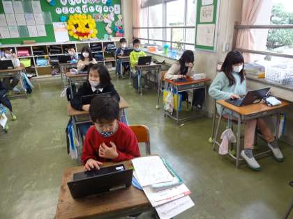 「わあ、英語がある。」「4年生の勉強もできる。」などのつぶやきも聞こえます。