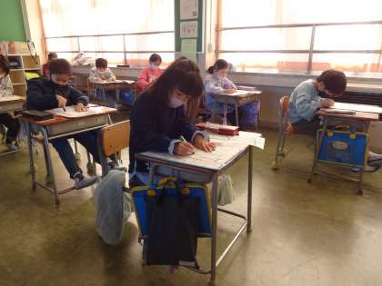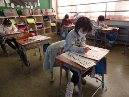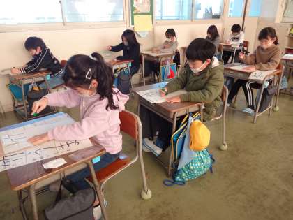 書き初めの練習をしています。今年度の文字は「竹うま」です。