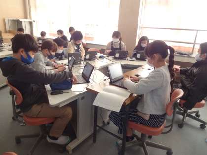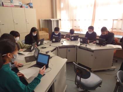 卒業文集の原稿が出来上がった子供たちは、原稿用紙を見ながら、ワープロ入力を始めました。