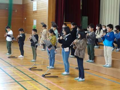 音楽科の授業で学んだ成果を十分に発揮しました。全校児童から大きな拍手をもらいました。