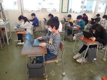 今日の宿題は、クロームブックを家へ持ち帰って、クラウド型デジタル教材(ドリル教材)の問題を解きます。