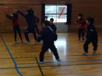 「できるだけシュートできるように、守られていない人に渡す」など、ホワイトボードに書き、チーム練習をしたり、試合をしたりしました。