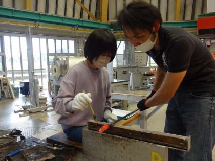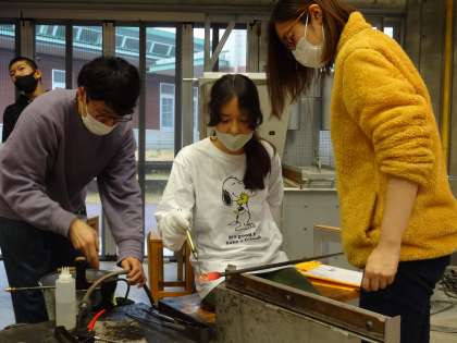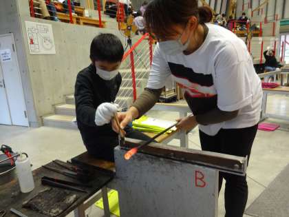 針のような物で熱したガラスを刺すと、出来上がったときに泡のようなものが中に入ります。
